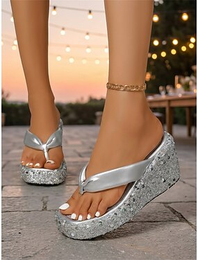 dameflapper med paljetter og platå – glittersandaler til strand og sommerferie