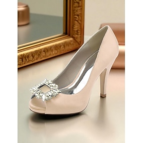 Damesko med peep toe i sateng og krystallspenne – klassiske pensko med høy hæl for damer, perfekt for cocktailfester og kveldsarrangementer