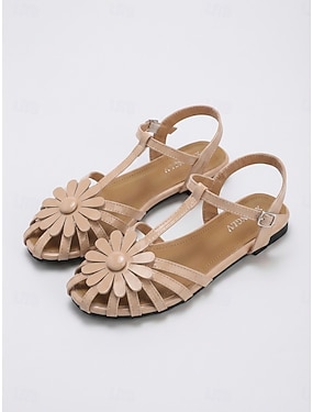 Aprikosfargede bohemske flate sandaler til dame med blomsterdekorasjon – elegante sommersko med t-stropp for feriesteder og strandbryllup &tropiske utflukter