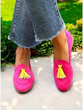 Kvinnenes fuchsiasuede dusk slip-on loafers – Dristige og lekne uformelle flats sommerens gatebildet