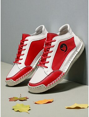 Røde og hvite damesko i casual-stil – myk og fleksibel såle, retro sportsstil, ideell for høytidsantrekk, daglige ærender, turer utendørs og juletema-antrekk
