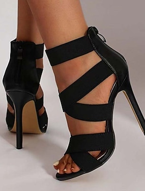 svarte stiletthæler for kvinner – åpen tå, glidelås bak, elegant design for fester, bryllup og formelle arrangementer