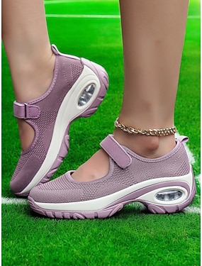 Lilla strikkede slip-on-sneakers til dame – lette, pustende og komfortable tursko for hverdagsbruk, reiser og fritidsantrekk