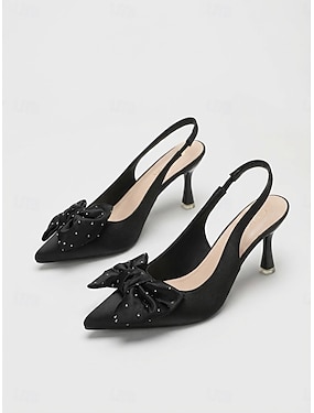 Svarte slingback-hæler med sløyfe til dame – elegante pumps med spiss tå til cocktailfester &kveldsarrangementer