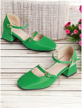 kvinners retro mary jane blokkhælsko – livlig grønt lakkskinn med justerbare stropper, perfekt for kontor, fester og uformelle antrekk