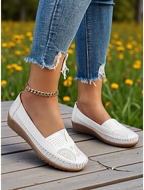 dameslippers med laserskårne detaljer – uformelle, flate mokkasinsko for daglig bruk i sko og kjøring