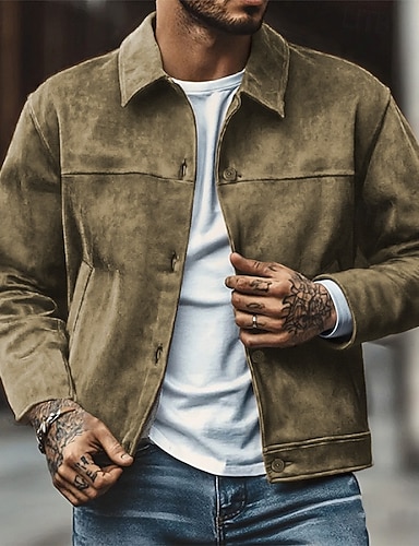 Herre Lett jakke Blazer i imitert semsket skinn Uformell jakke Feriereise Daglig Slitasje-sikker Lomme Vår Høst عادي Mote Klassisk Knaphul Normal Kamel Kongeblå Brun Jakker