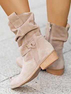 uformelle beige støvletter i imitert semsket skinn for kvinner med spennedetalj - perfekt for hverdagsbruk, høstutflukter og uformelle sammenkomster
