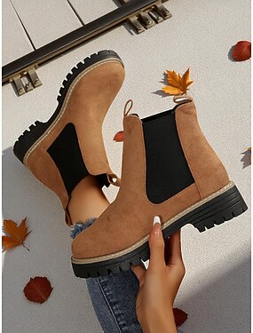 Dame Støvler Daglig Ankelstøvler Kjede Kile Rund Tå Fritid Semsket lær Fuskelær Glidelås Svart Brun