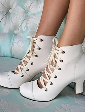 vintage viktorianske ankelstøvletter med snøring for kvinner – hvite støvletter med mellomhæl i retrostil for cosplay og spesielle arrangementer