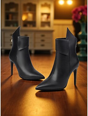 svarte ankelstøvletter for kvinner - høy hæl med glidelås og spennedekor, perfekt for fest, kveld ute og moteriktig høst/vinterlook