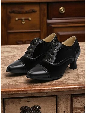 Damesko med edwardianske snøring og kitten heel fra 1920-tallet – vintage tofarget brogue-pumps i fløyel og imitert skinn til Gatsby-fester og formelle antrekk