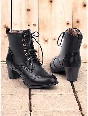 Damestøvletter i vintage-stil med snøring i imitert skinn og blokkhæl, perfekte for avslappede og retro antrekk.