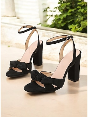 svarte sandaler med blokkhæl for kvinner – ankelreim slingbacks med sløyfeaksent for uformelle dater og urban chic