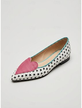 Dameloafers med stjernetrykk og rosa hjertedetaljer – søte og komfortable flate sko til hverdagsbruk