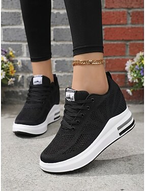 hvite pustende flyknit-plattformsneakers til dame – lette, polstrede tursko, moderne, avslappede motesko for løping, reiser, jobb, treningsstudio, shopping &daglig bruk