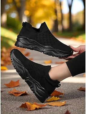 oransje slip-on flyknit-sneakers til dame – pustende, lette tursko i netting med kraftig såle for fritid og sport