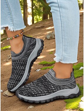 Flyknit slip-on sneakers til dame – lette, pustende og avslappede flatsko for turgåing, shopping og feriebruk
