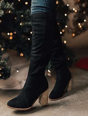 knehøye støvletter i brunt semsket skinn med spiss tå og blokkhæl - stilig og behagelig høst- og vinterfottøy