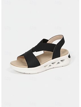 Damesandaler med to farger og lettvekt i platå med elastiske stropper for utendørs gange, fritidssport og sommeraktiviteter i parken