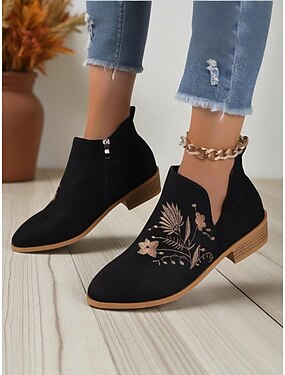 Lilla ankelstøvletter med snøring og broderte paneler til dame - flate støvletter i edwardiansk viktoriansk stil fra 1900-tallet for cosplay, høstfestivaler og vintage-inspirerte antrekk