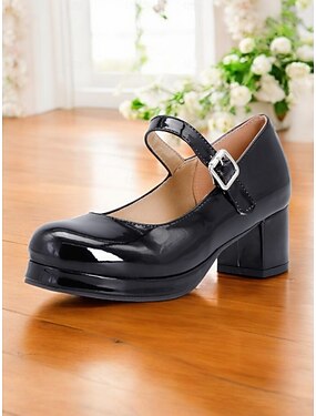 kvinners retro patenterte Mary Jane-hæler i imitert skinn – chunky blokkhælplattformpumper for cosplay, fester og vintagemote
