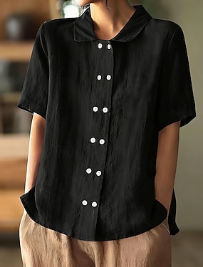 Dame Linskjorte Sommerskjorte Skjorte med knapper Imitert bomullslin Knapper Helfarge عادي Daglig Stilfull Fritid Kortermet Aftæpning Vanlige topper Ferie Ut på byen Ferieklær Blå Svart Rosa Lysebrun