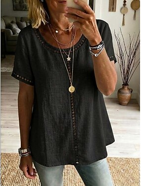 Dame T skjorte Skjorte i imitert lin T-skjorte عادي Klassisk Fritid Kortermet Crew-hals Vanlige topper Avslappet Daglig Helg Svart Gul Rød Kakifarget Sommer Vår