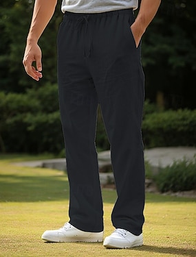 Herre Linbukser Bukser Sommerbukser Strandbukser Elastisk midje Snorer Rett ben عادي Komfort Pustende Full lengde utendørs Daglig Ferie Ferie Klassisk Stil Svart Hvit