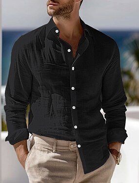 Herre Skjorte Linskjorte Uformell skjorte Skjorte med knapper Bomullsskjorte عادي Feriereise Hawaiisk Svart Hvit Kakifarget Lyseblå Langermet Båndkrage Vår Høst Klær Knapp ned