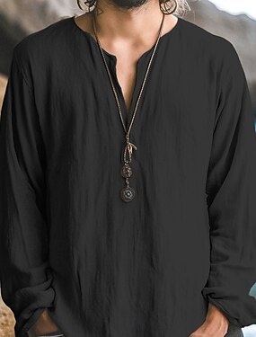 Herre Skjorte Linskjorte Sommerskjorte Strandskjorte Helfarge Feriereise Avslappet Svart Hvit Grønn Kakifarget Langermet V-hals Alle årstider Klær Grunnleggende