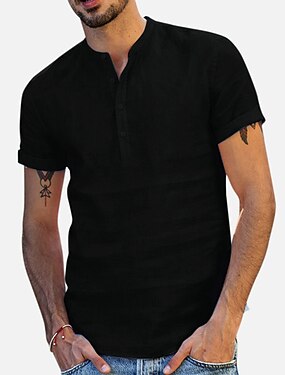 Herre Skjorte Linskjorte Popover skjorte Sommerskjorte Strand Klær Skjorte med bandkrage عادي Feriereise Curise Svart Hvit Rosa Grønn Kortermet Henley Sommer Klær