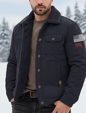 Herre Amerikansk amerikansk flagg Bomberjakke Sherpa jakke Hold Varm Årgang Fritid utendørs Hjem Flere lommer Bomullsjakker Vinterfrakker Høst Vinter Fleecekrage med nedfellbar krage Langermet Svart