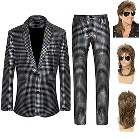 sett med metalliske dresser& blazer bukser& bukser multe parykker 3 stk 1980-tallet disco rock star antrekk herre abba cosplay kostyme maskerade performance party club