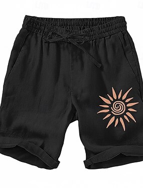 Herre Shorts Lin Shorts Sommershorts Strandshorts Snorer Elastisk midje Grafisk Sol Myk Pustende Knelengde Avslappet Daglig Strand Hawaiisk Designer Blå Svart Uelastisk