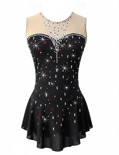 Kjole til kunstløp Dame Jente Skøyteløp Kjoler Svart Rød Elastisk Trening Konkurranse Skøyteklær Håndlaget Krystall / Rhinstein Ermeløs Skøyting Kunstløp