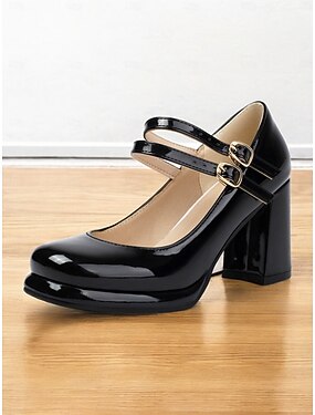 kvinners retro doble stropper Mary Jane hæler - lakkert blokkhælsko for vintage-inspirerte antrekk