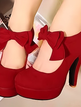 høyhælte pumps for kvinner med rød sløyfe – vintage platåsko i semsket skinn for fest-, bryllups- og ferieantrekk
