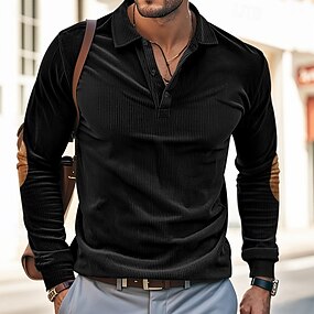Herre Vaffel poloskjorter Poloskjorter Formell Arbeid Ribbet polokrage Langermet Mote Bekvem Fargeblokk Knapper Sommer Vår Høst Svart Navyblå Vaffel poloskjorter