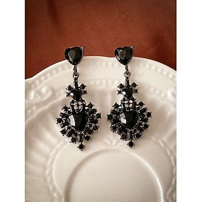 Vintage øredobber med svarte krystaller til dame – Gatsby-inspirerte statement-smykker til retro ballroomdans &Festantrekk fra 1920-tallet