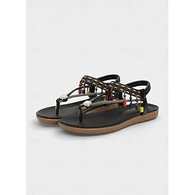 Bohemske sandaler med perler og ankelfrynser til dame – flate, komfortable sommersko til strand for ferie, resort, festivaler og uformelle reiser