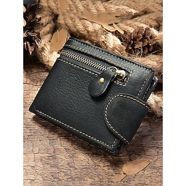 rfid-blokkerende lærlommebok for menn – premium okseskinn med glidelåslukking, flere kortspor og valutarom – stilig og sikkert hverdagstilbehør svart brun