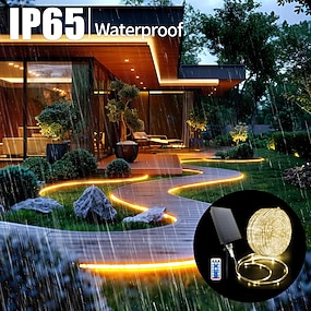 vanntette led stripelys 360 rundt neonlys 5-30m/16-100ft, fleksibelt og dimbart led taulys med fjernkontroll multi-modus idé ac220v eu uk au plugg