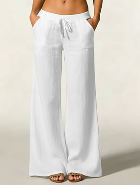 Dame Imitert bomullslin Bukser Sommerbukser Posete bukser Ferie Grunnleggende Fritid Full lengde Høy Midje عادي Snorer Bred Bukseben Komfort Utendørs Mikroelastisk Daglig Strand Ferie Blå Svart Hvit