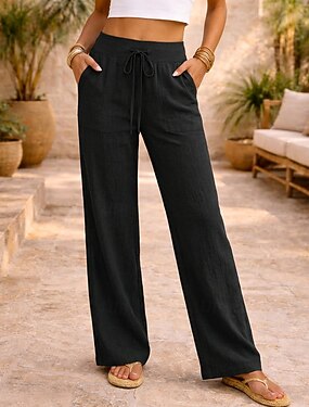 Dame Bomull Bukser Sommerbukser Strandbukser Ferie Mote Fritid hverdag Full lengde Høy Midje عادي Snorer Elastisk midje Rett ben Komfort Hurtigtørkende Myk Uelastisk Gateklær Strand Ferie Svart Hvit