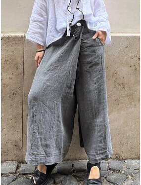 Dame Capri-bukser Imitert bomullslin Bred Bukseben kinesisk Ferie Gatemote Fritid Full lengde Middels midje عادي Lomme Elastisk midje Pustende Mikroelastisk Daglig utendørs Gate Lysegrå Mørkegr