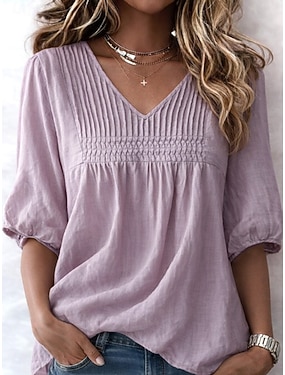 Dame Skjorte Bluse Imitert bomullslin عادي Fritid Langermet V-hals Vanlige topper Daglig Ferie Ut på byen Gul Rosa Kakifarget Grå Sommer Vår