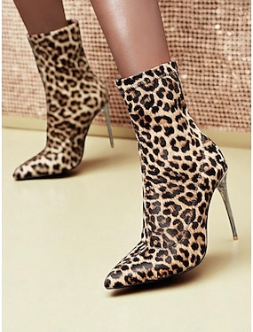 damestøvletter med leopardmønster og stilett - sexy høyhælte støvletter med spiss tå for natteliv, fest og klubbantrekk