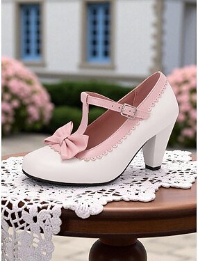 Damesko med rosa sløyfe og T-stropp fra 1950-tallet – søte pumps i lolita-stil med rund tå til teselskaper, cosplay og spesielle anledninger