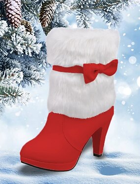 Dame Støvler Valentines gaver Hælstøvler Fest Fargeblokk Fleece Lined Ankelstøvler Pelskanter Sløyfe Plattform Høy Hæl Tykk hæl Rund Tå Søt Fuskelær Tøfler Svart Hvit Rosa